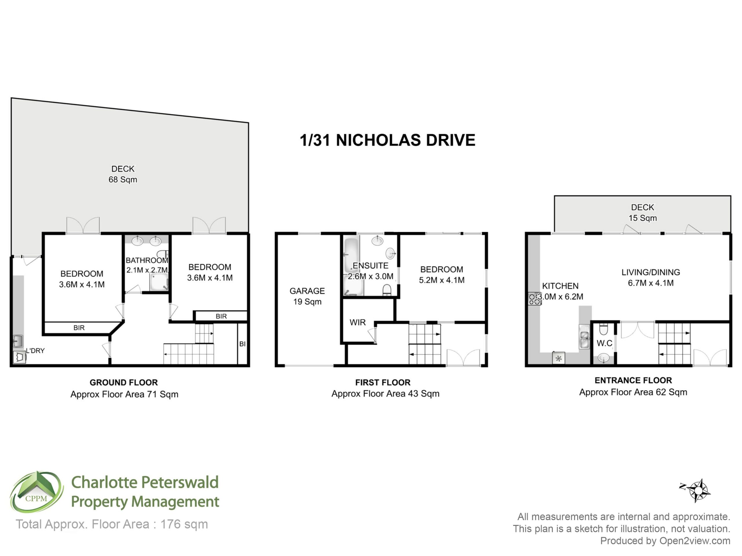 This tri-level free standing town house provides modern living. The entrance floor has a powder room, large open plan kitchen and living which leads out to a large deck and that great view! A short flight of stairs up to the first floor takes you to the master bedroom with ensuite bathroom which includes full size bathtub and separate shower plus, there is a large walk-in robe. From the Entrance level a short flight of stairs takes you down to the ground floor which is where you will find 2 further bedrooms both with built in robes, bathroom with walk in shower, laundry with loads of storage and, a large deck accessed directly from both bedrooms. Other features include gas cooking, dishwasher, r/c a/c, washing machine and single lock up garage.