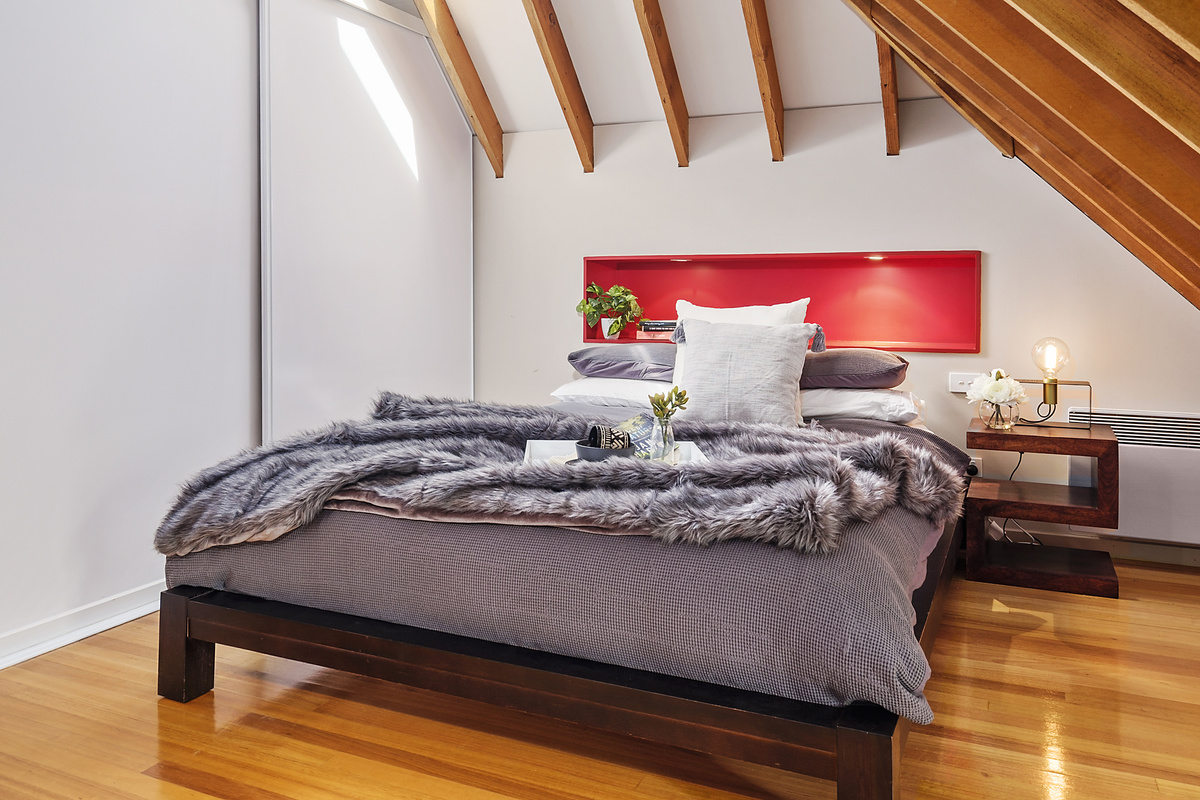 Gaze at the stars at night through the skylight above the cosy bedroom (built in robe plus chest of drawers).