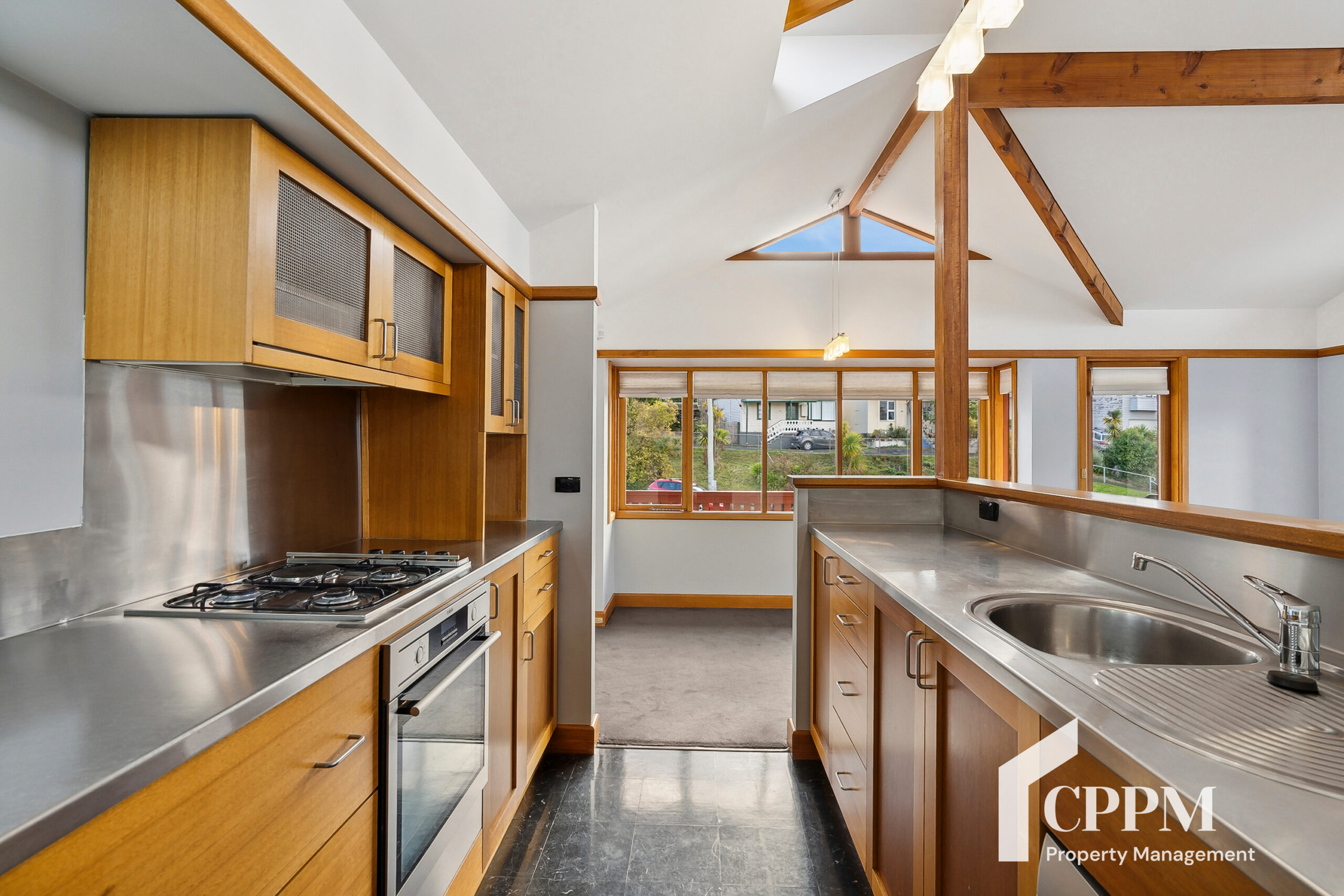 The living area is inclusive of dining / lounge / kitchen and has gorgeous cathedral ceilings, with access to the deck- perfect space to take in the water & city views.