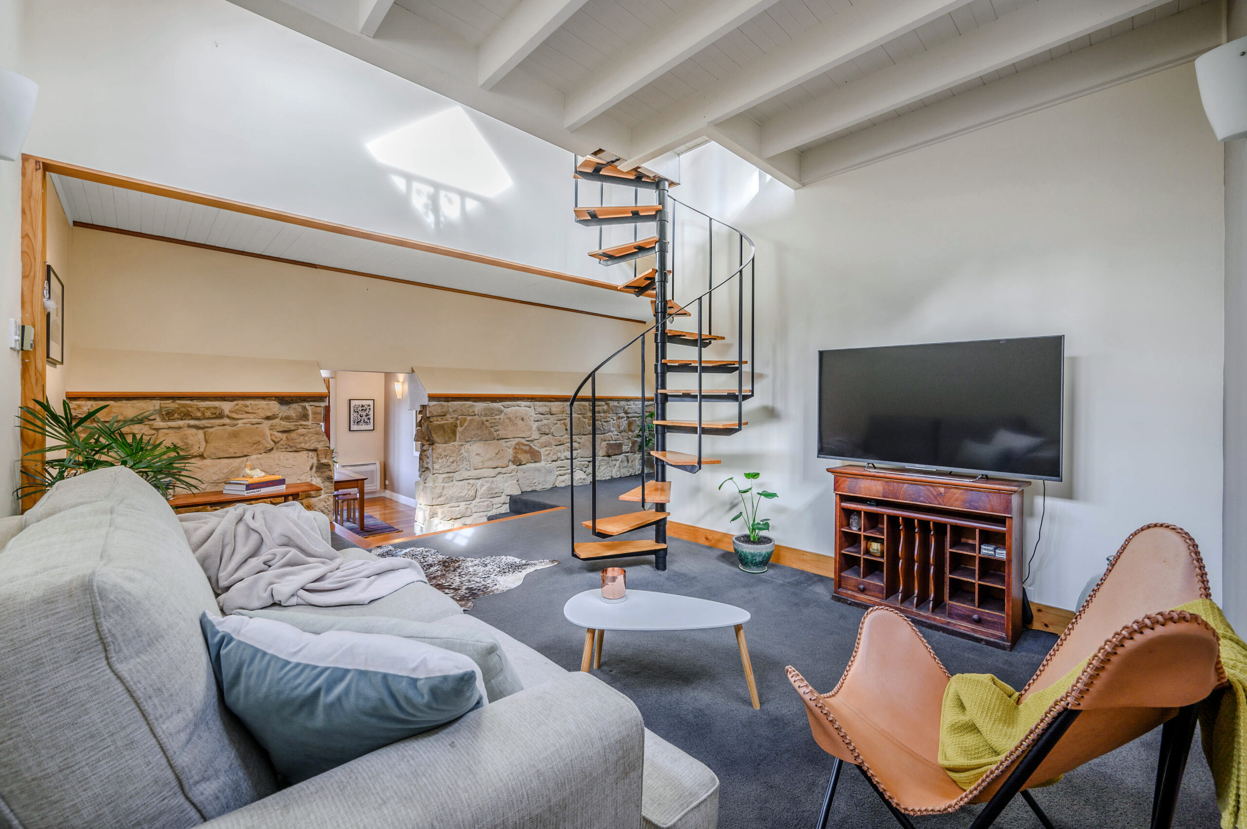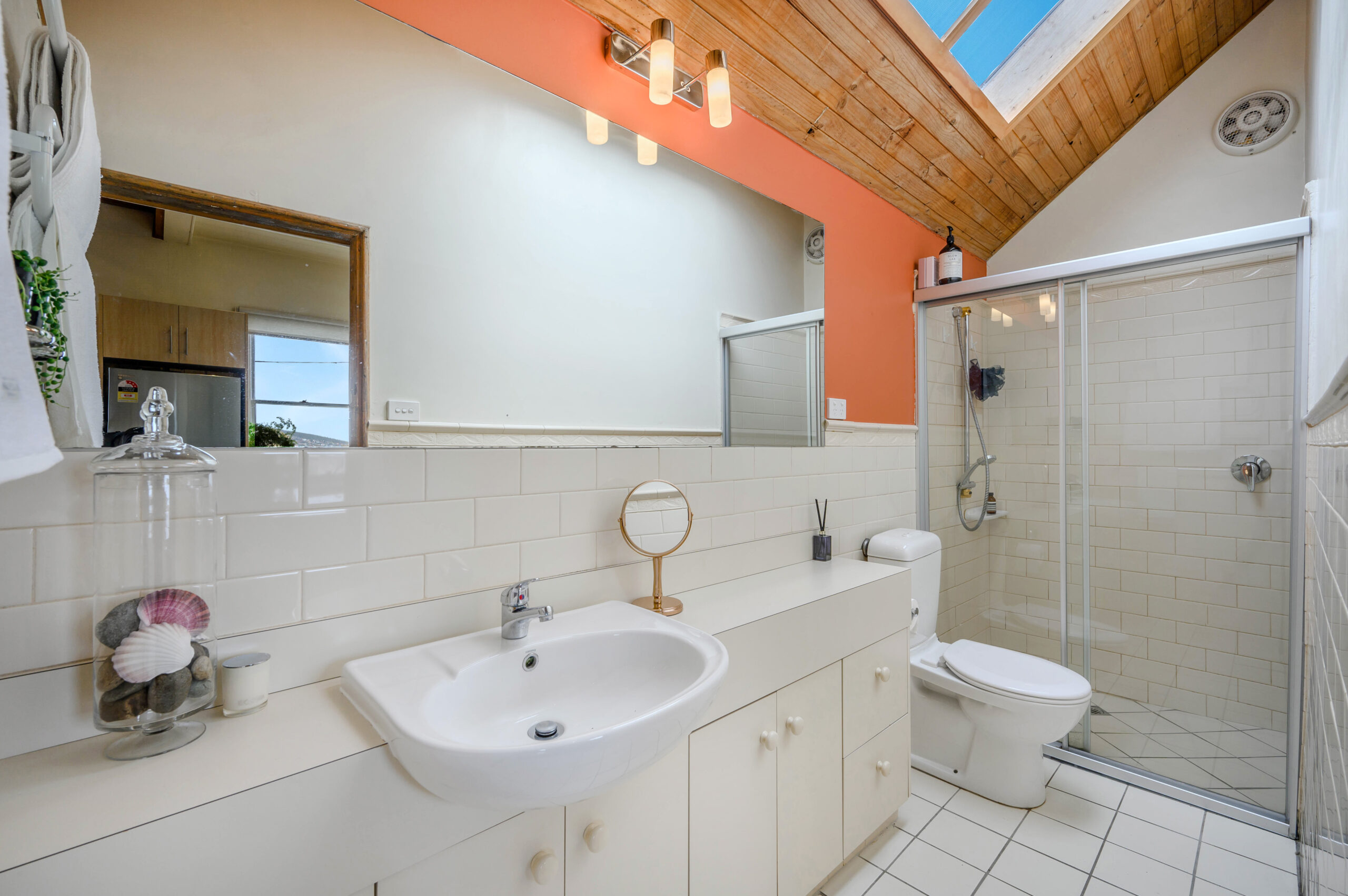 The stylish bathroom is centrally located, and features skylight, large vanity, shower, toilet, and heated towel rail. Outside, the grounds have been extensively landscaped and a garden shed is on-site.