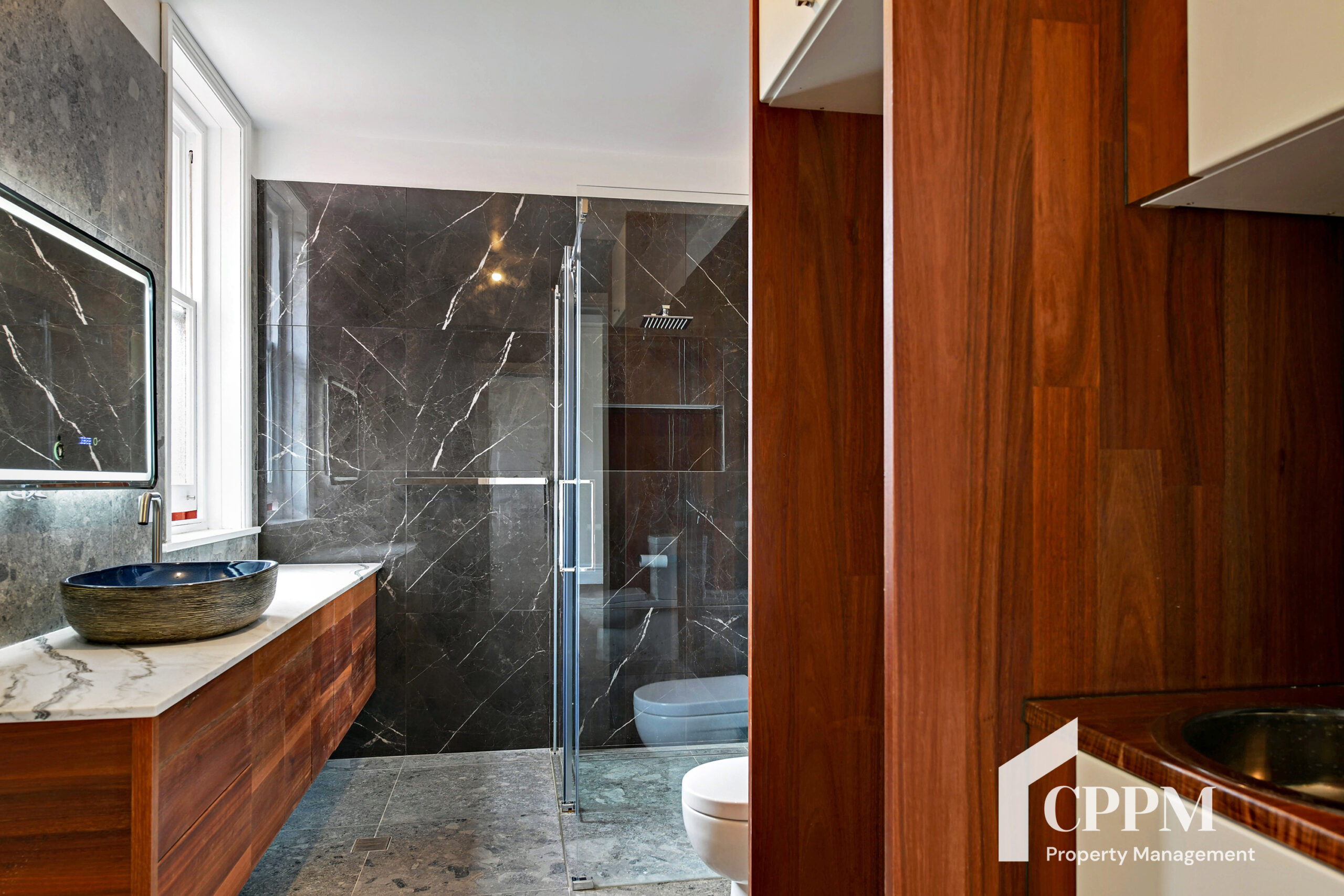 • Stylish bathroom with walk-in shower
