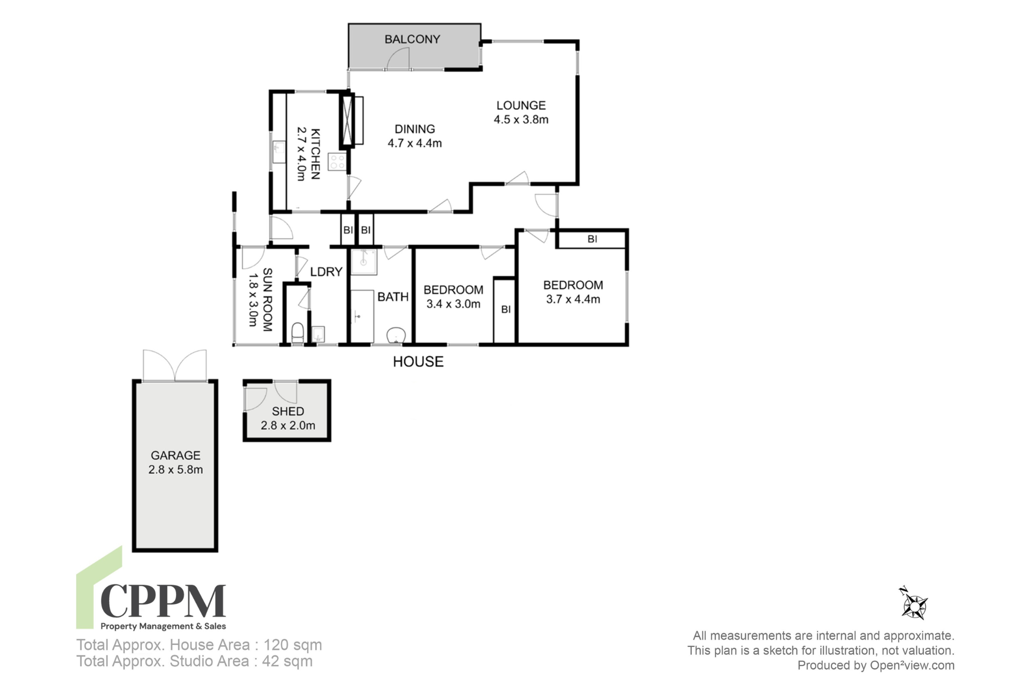Accommodation comprises of two spacious bedrooms with built-in robes, plus a versatile sunroom that could serve as a third bedroom, study, or home office.