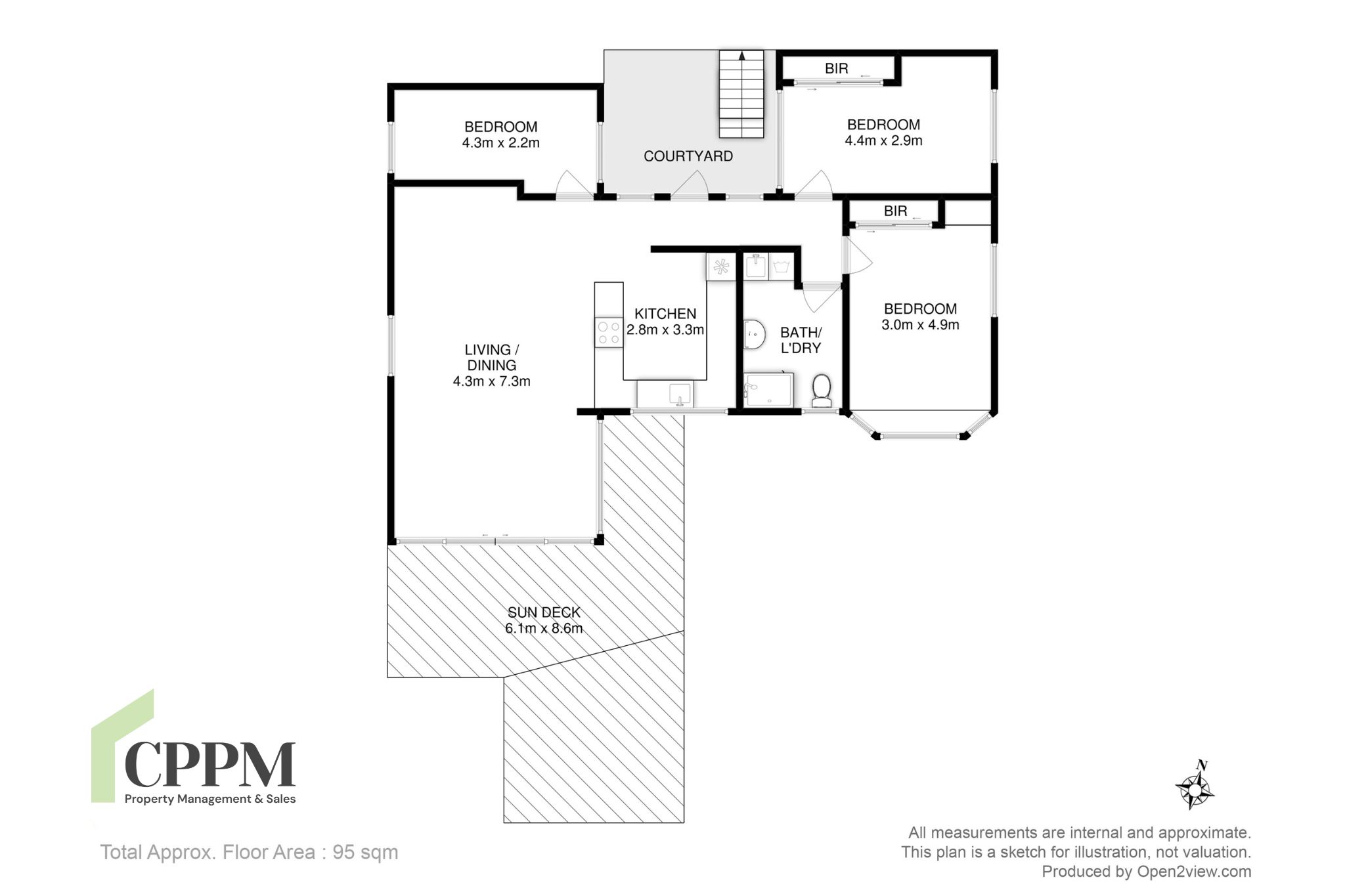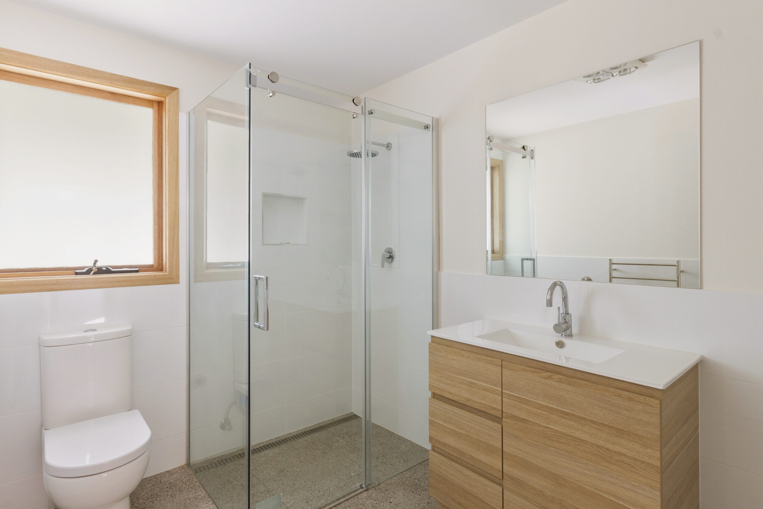 Upon entering the house, there are 2 spacious bedrooms with built-in robes, the master with a gorgeous window seat and built-in desk, as well as a shower-room/laundry to your left. To the right is a generous open plan living/dining space with reverse-cycle air-con, on-trend kitchen and a 3rd bedroom/study/home office.